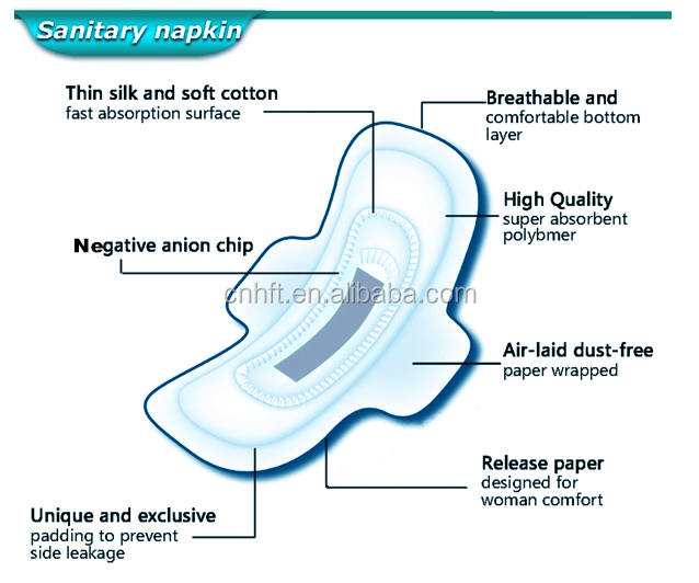 Sanitary napkin's size, weight, SAP, Absorbency, quilted pattern,printing on peel strip and packing, color can be modified as clients’ requirements.